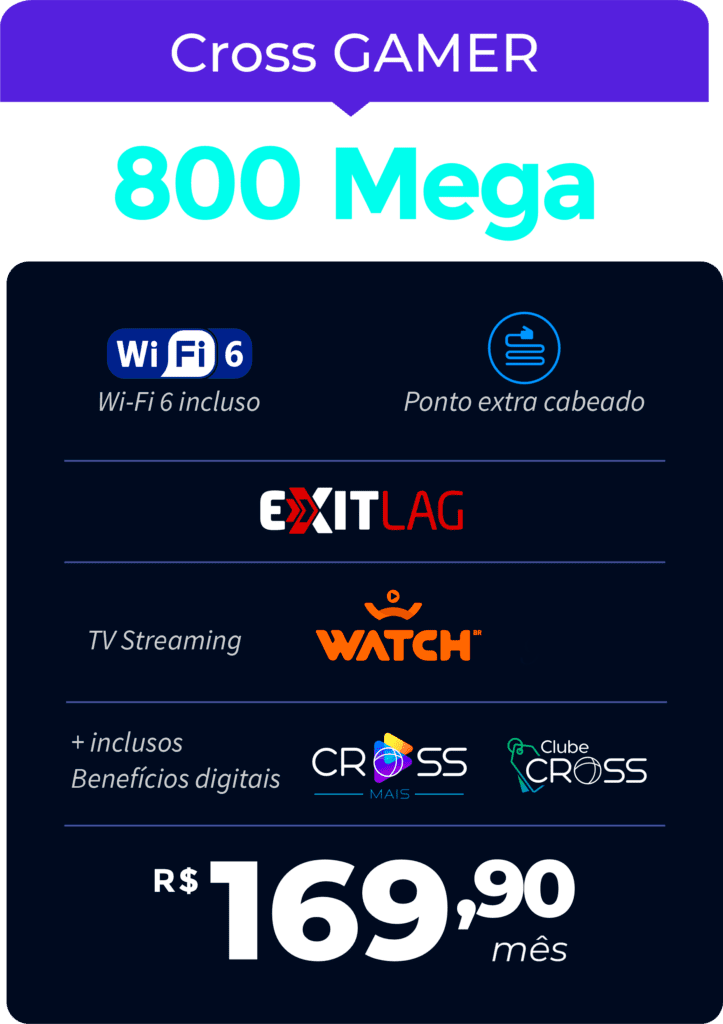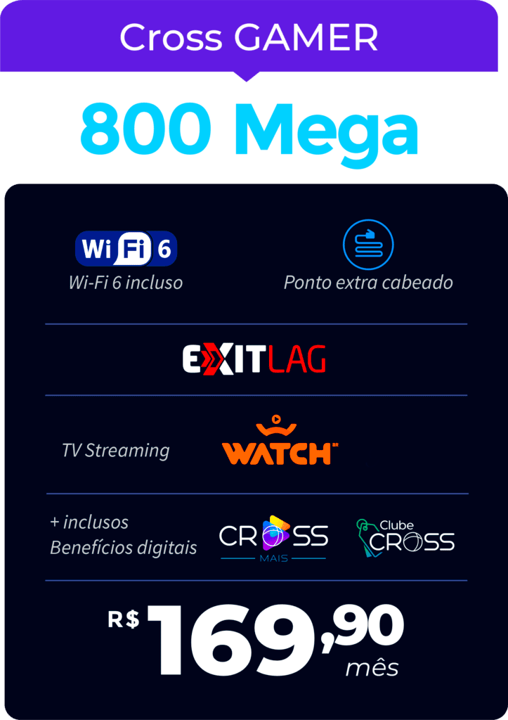 Transforme-se em um verdadeiro pro player! Com o Cross Gamer, você terá um ponto cabeado dedicado diretamente ao seu PC ou console, garantindo a máxima jogabilidade sem interferências. Prepare-se para uma experiência de jogo incomparável!